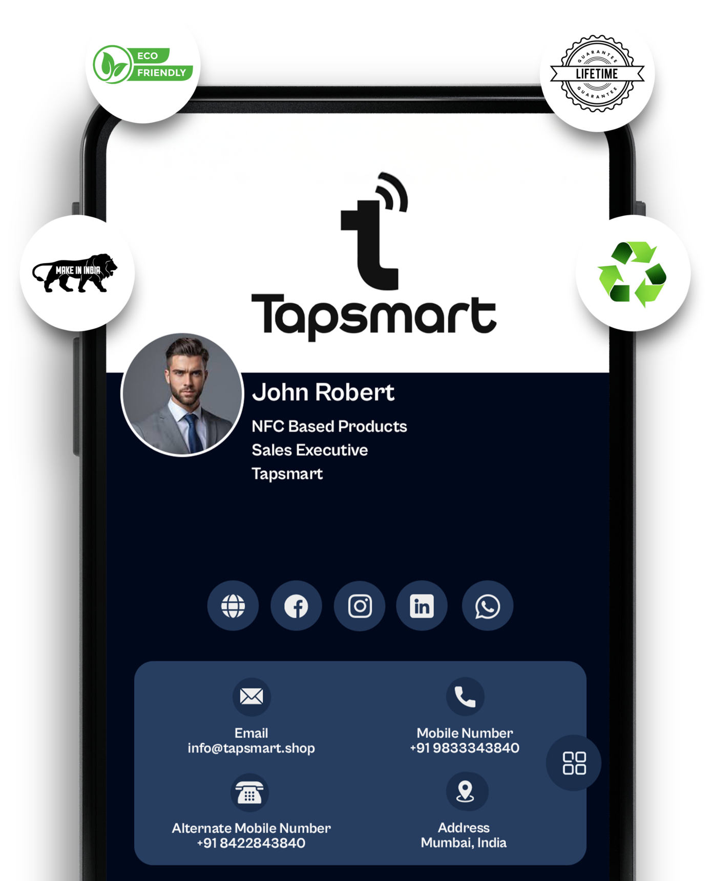 NFC-based Business Cards, Google Review Cards, WhatsApp Cards, and Frames are smart tap-to-share products that instantly share contact details, reviews, websites, and messages in a simple and secure way.